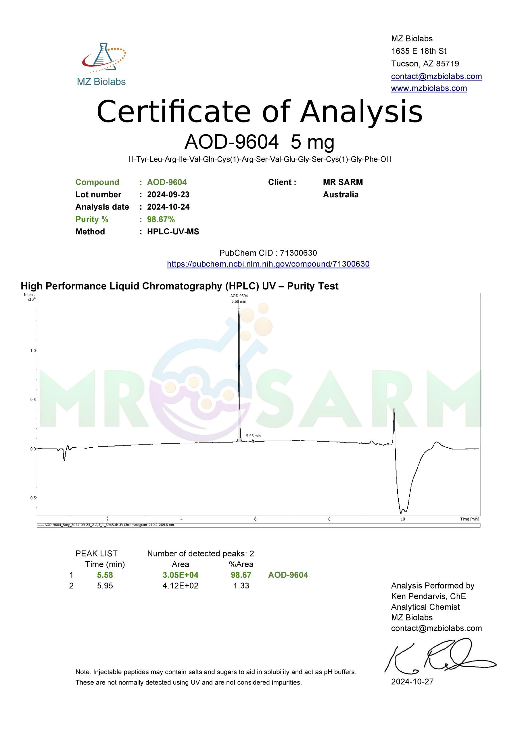 - AOD-9604 5mg: Supports weight loss and body fat reduction.