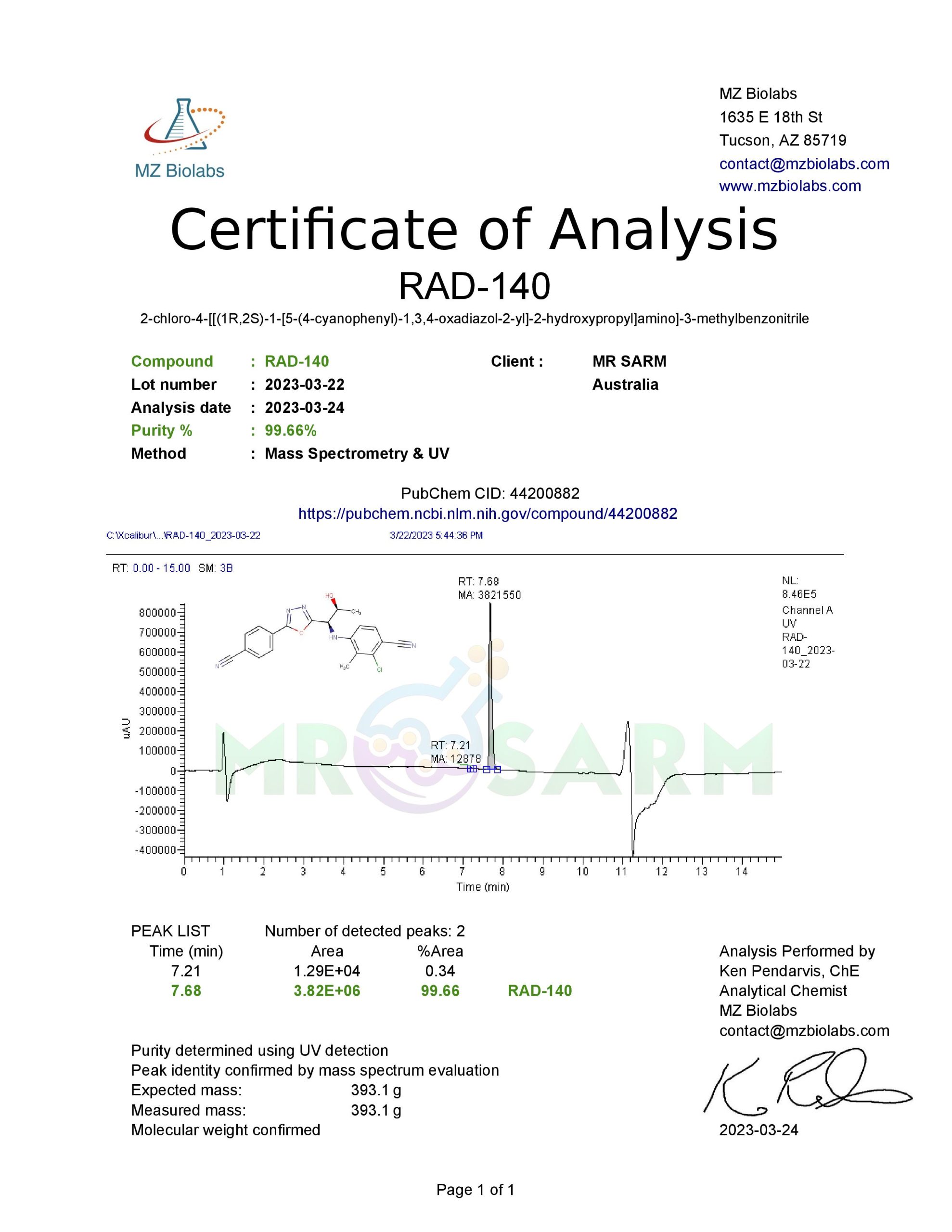 RAD-140, also known as Testolone, is a SARM, a selective androgen receptor modulator. There is little danger of nonskeletal muscle tissues experiencing androgen activity. In fact, RAD-140 has the highest ratio of anabolic to androgenic activity of any SARM discovered, 90:1.